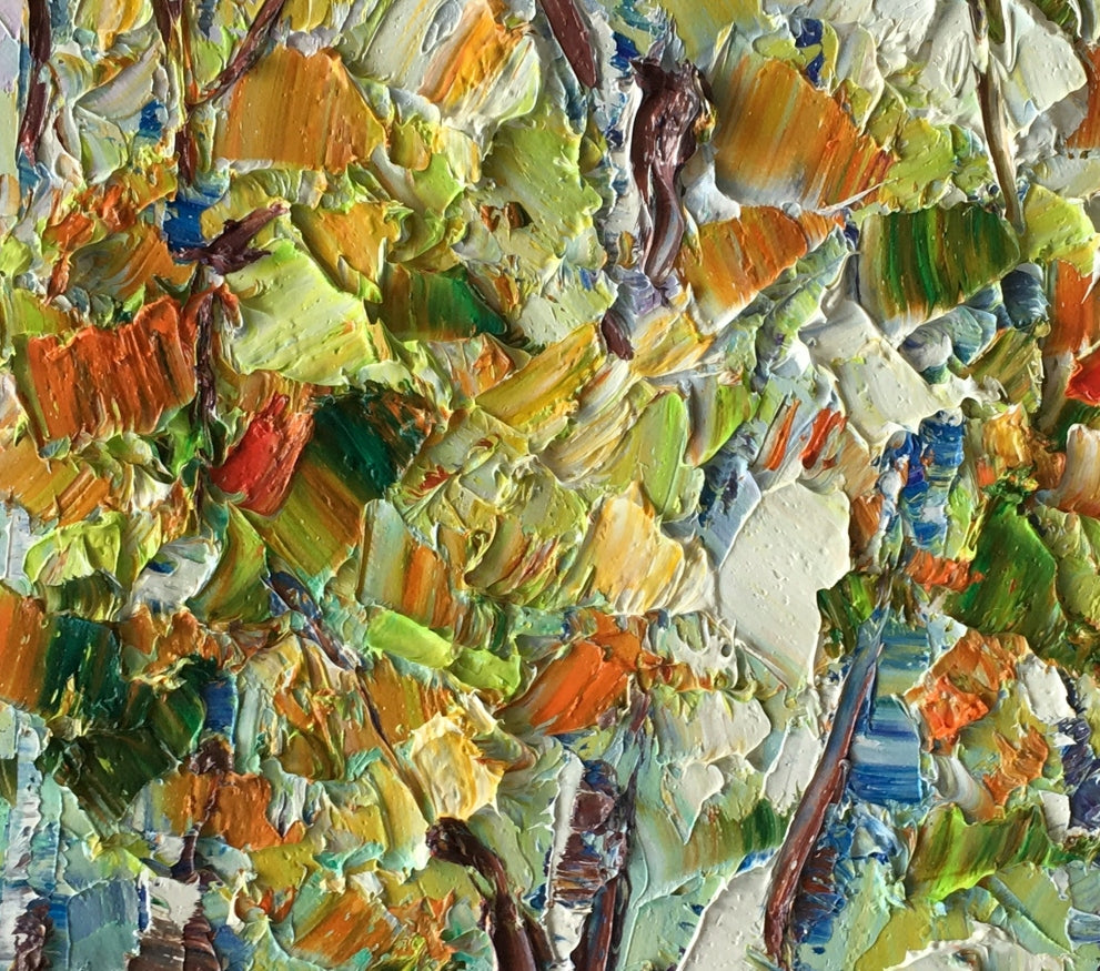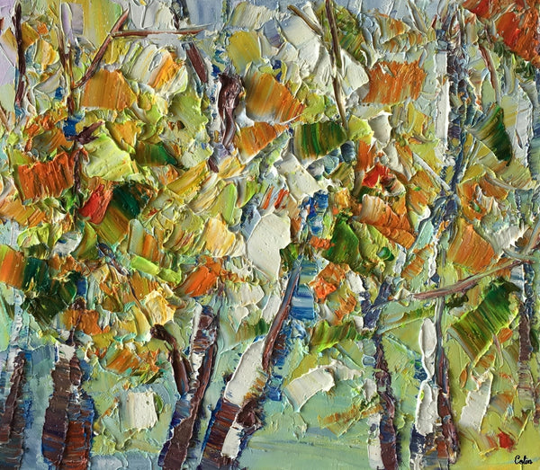 Abstract Landscape Painting, Forest Tree Painting, Small Oil Painting, Heavy Texture Oil Painting, 12X12 inch