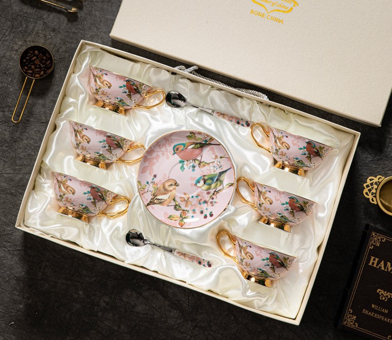 Lovely Birds Ceramic Cups, Elegant Ceramic Coffee Cups, Afternoon Bone China Porcelain Tea Cup Set, Unique Tea Cup and Saucer in Gift Box