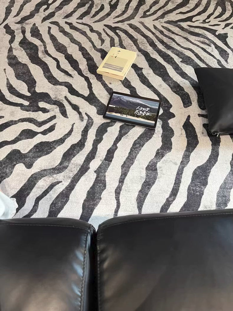 Black Stripe Area Rugs under Sofa, Mid Century Area Rugs for Living Room, Abstract Contemporary Rugs for Bedroom