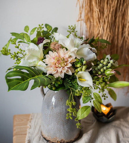 House Warming Gift, Calla Lily, Monstera Leaf, Globe Amaranth, Dahlia Flower, Botany Plants, Spring Flower Arrangement for Bedroom, Beautiful Modern Flower Arrangement Ideas for Home Decoration