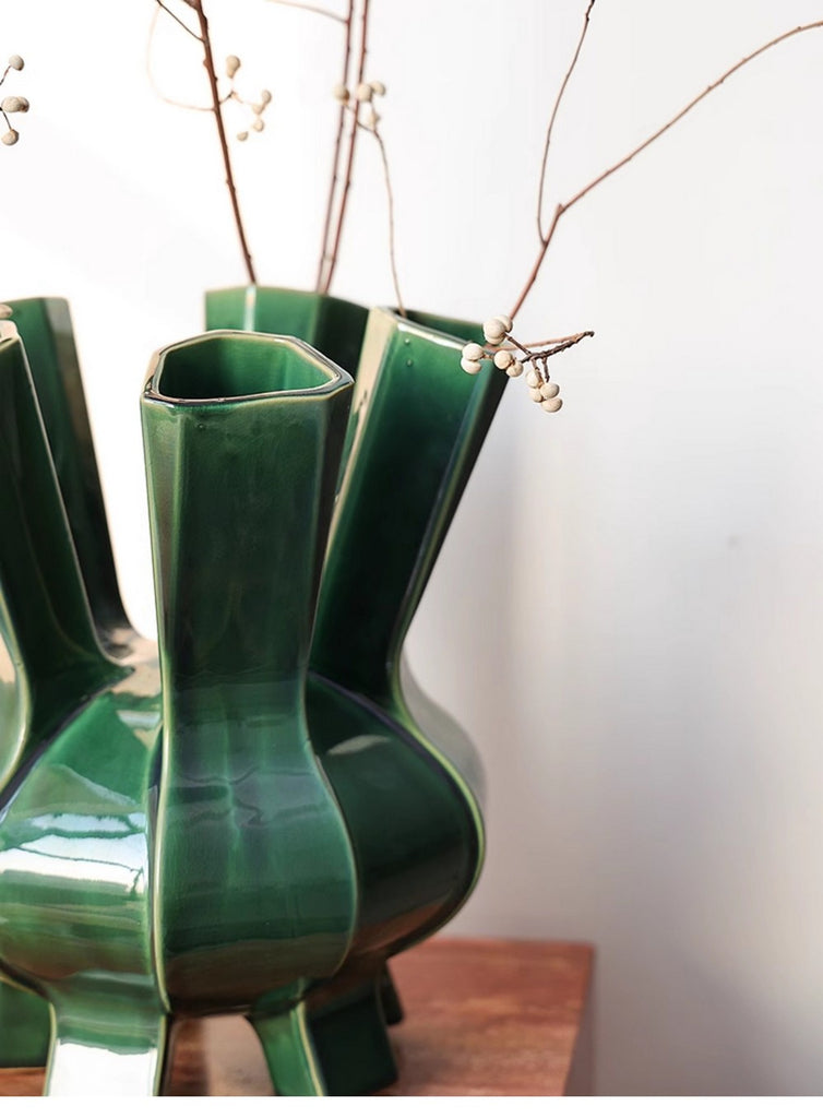 Centerpiece Ceramic Bouquet Vases, Contemporary Vases on Dining Table, Green Porcelain Vases for Modern Home Decor, Unique Handmade Modern Flower Vase