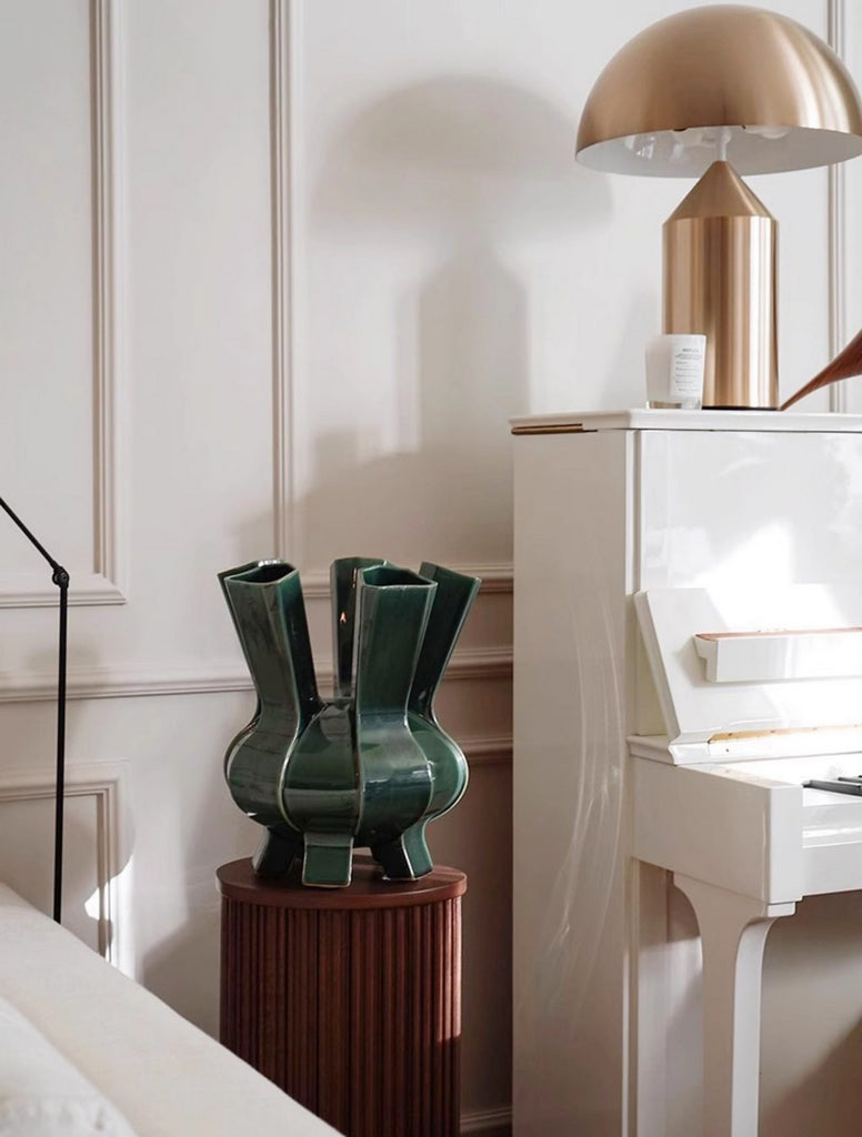 Unique Handmade Modern Flower Vase, Centerpiece Ceramic Bouquet Vases, Contemporary Vases on Dining Table, Green Porcelain Vases for Modern Home Decor-Paintingforhome