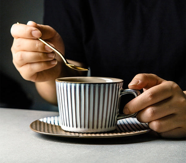 Each set includes 1* coffee cup and 1 saucer and 1 Spoon, Ceramic Coffee Cups, Coffee Cup and Saucer Set, Pottery Coffee Cups, Cappuccino Coffee Mug, Coffee Cup for Sale, Tea Cup, White / Green / Blue / Yellow