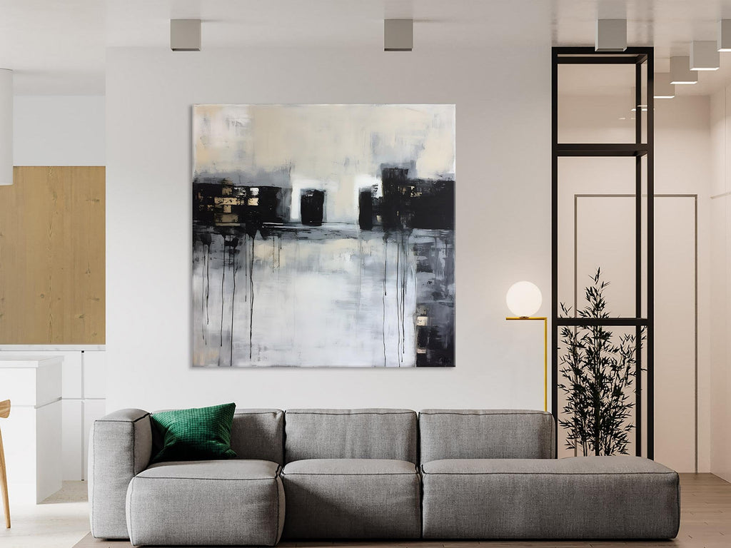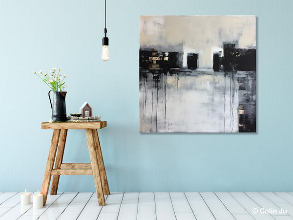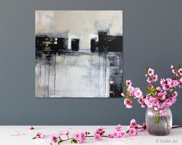 Contemporary Canvas Art, Black Acrylic Artwork, Original Abstract Wall Art, Hand Painted Canvas Art, Extra Large Abstract Painting for Sale-Paintingforhome
