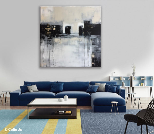 Contemporary Canvas Art, Black Acrylic Artwork, Original Abstract Wall Art, Hand Painted Canvas Art, Extra Large Abstract Painting for Sale