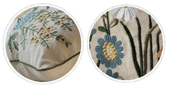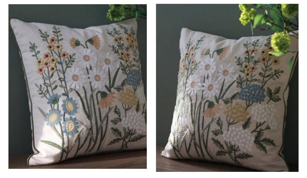 Decorative Pillows for Sofa, Flower Decorative Throw Pillows, Embroider Flower Cotton Pillow Covers, Farmhouse Decorative Throw Pillows