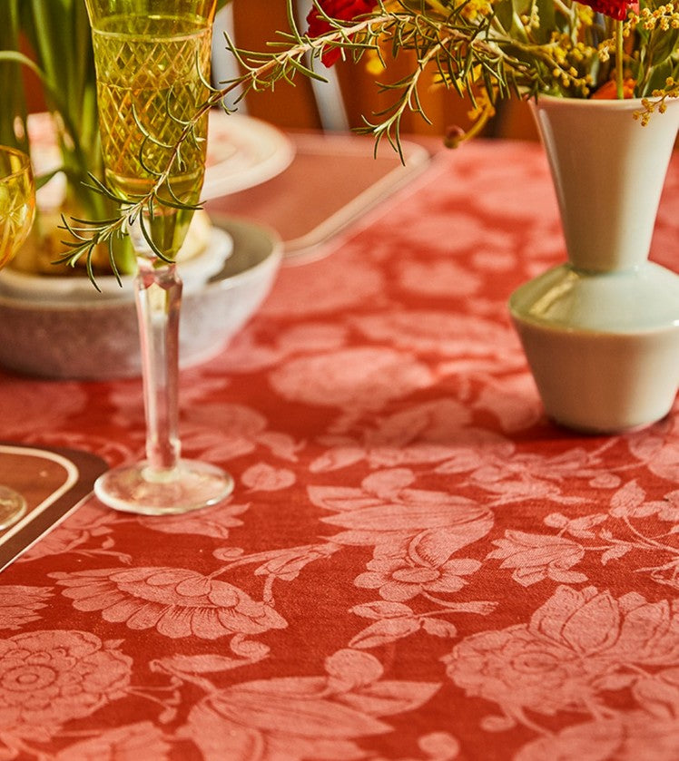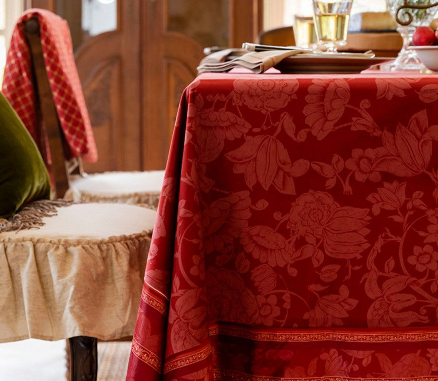 Red Flower Pattern Tablecloth, Rectangle Tablecloth for Dining Room Table, Square Tablecloth, Farmhouse Table Cloth, Wedding Tablecloth