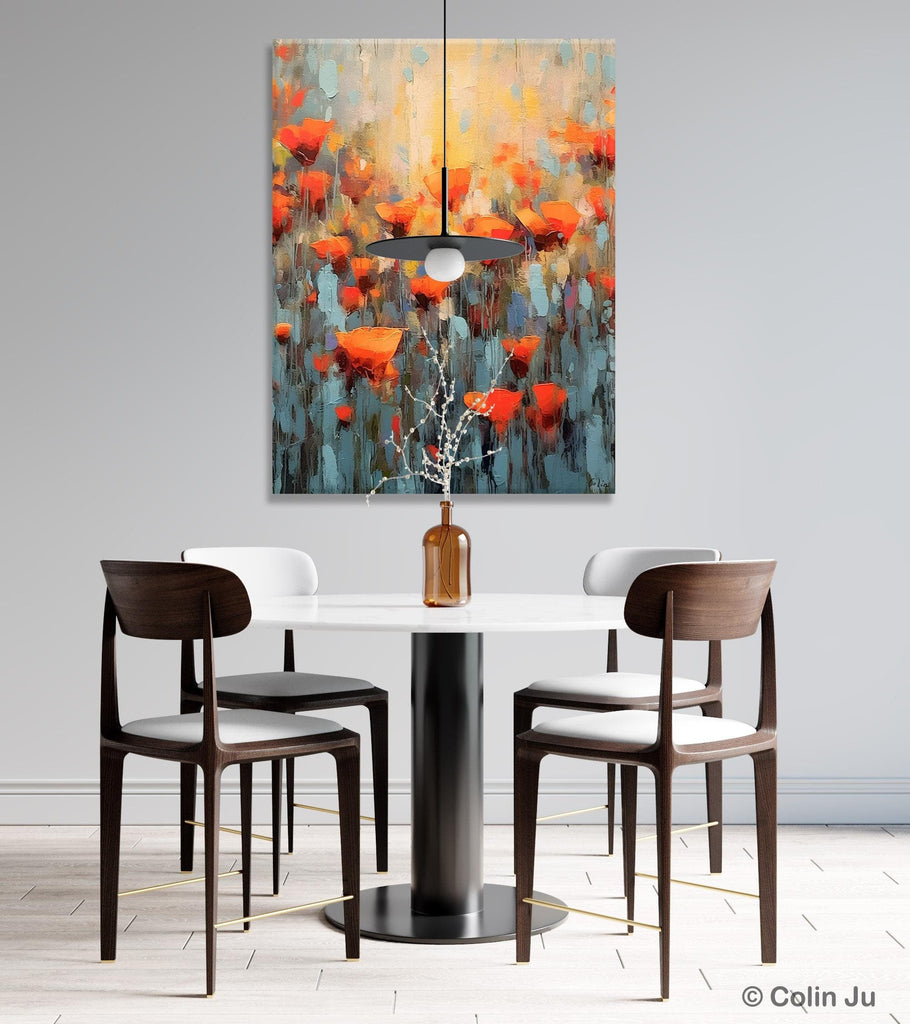 Flower Abstract Painting, Heavy Texture Wall Art, Acrylic Painting on Canvas, Canvas Painting Ideas for Dining Room, Original Abstract Art