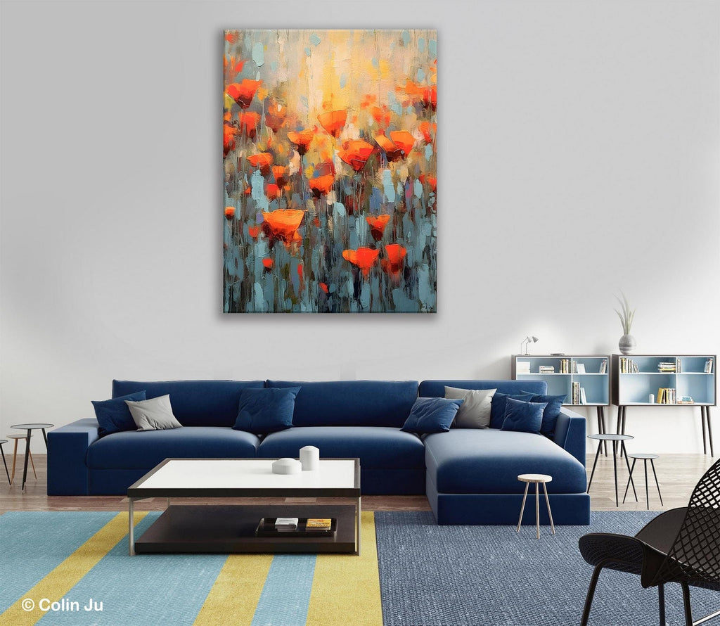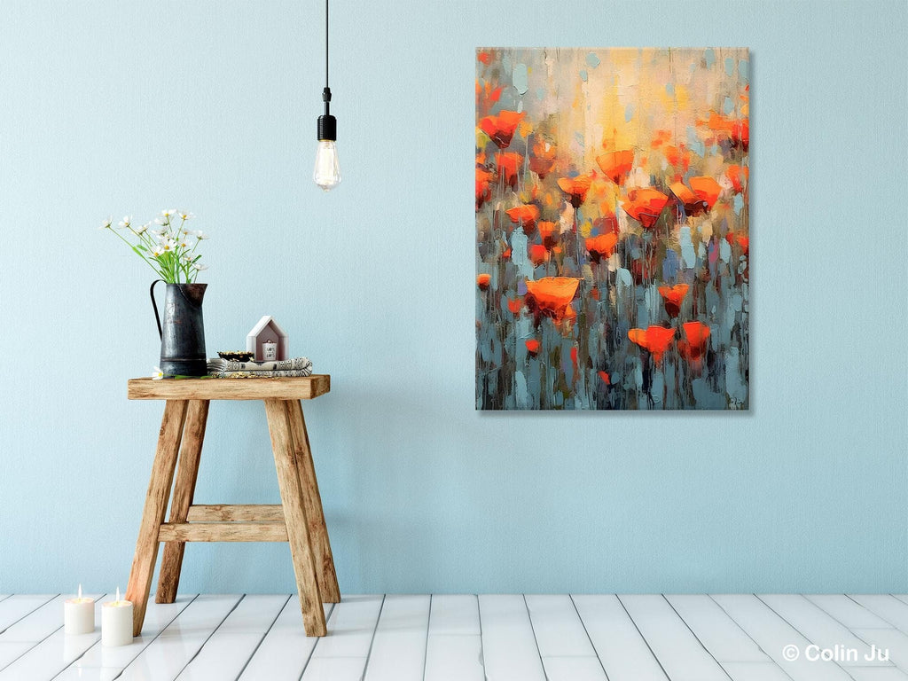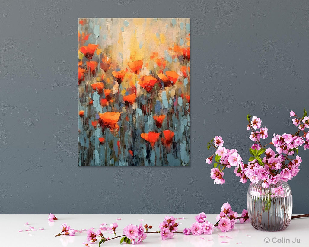 Heavy Texture Wall Art, Acrylic Painting on Canvas, Flower Abstract Painting, Canvas Painting Ideas for Dining Room, Original Abstract Art