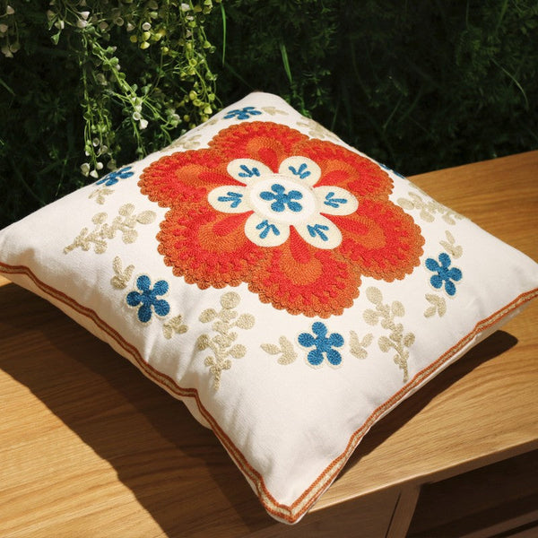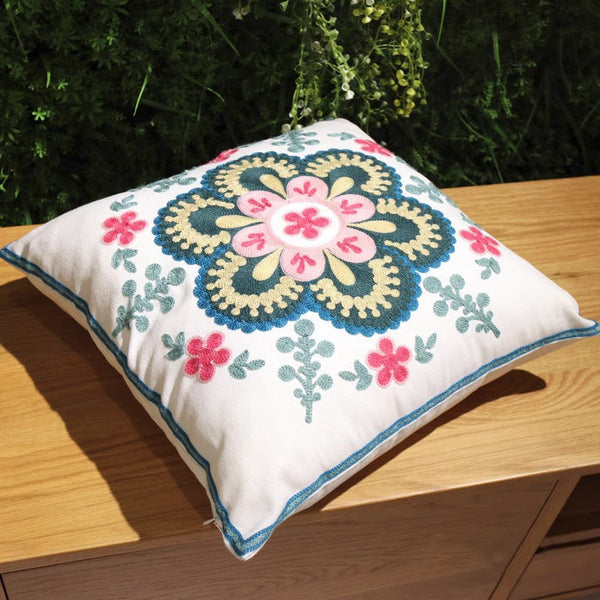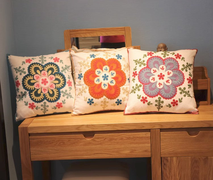 Flower Decorative Pillows for Couch, Sofa Decorative Pillows, Embroider Flower Cotton Pillow Covers, Farmhouse Decorative Throw Pillows