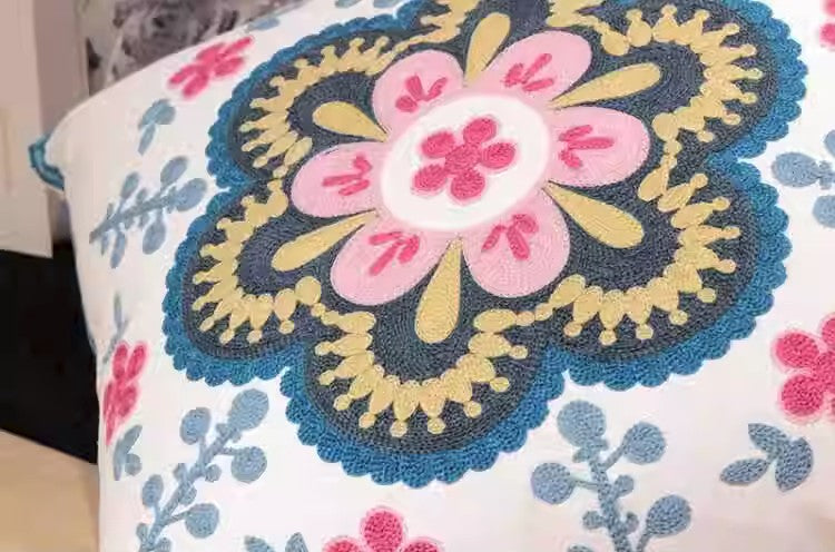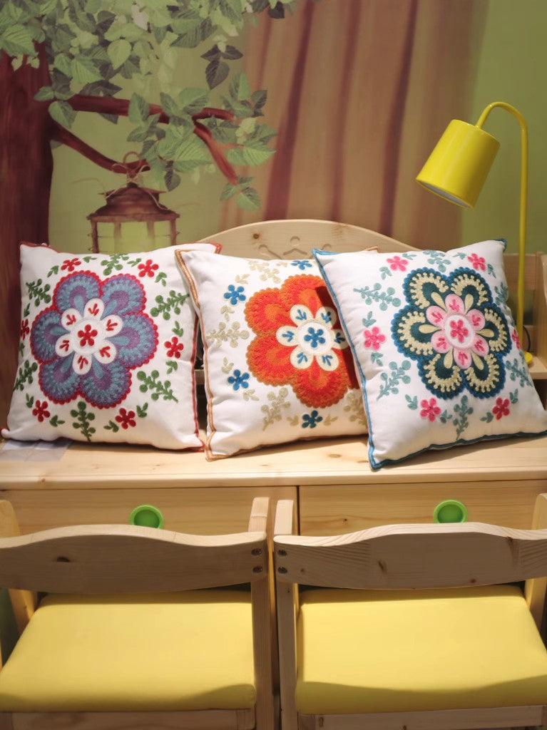 These Pillow Covers are made with cotton cloth on the front and back. Single-sided embroidery, and the back is pure white cotton cloth.