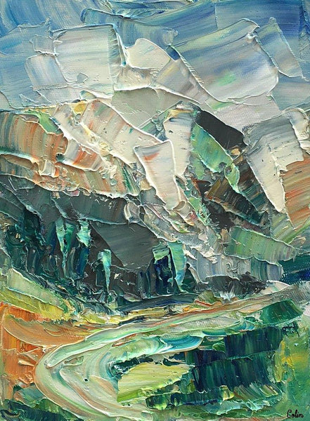 Heavy Texture Oil Painting, Canvas Painting, Small Oil Painting, Mountain Landscape Painting, 8X10 inch