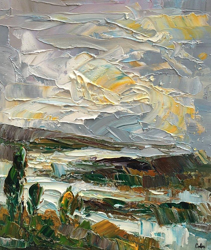 Materials: heavy texture oil paint, unstretched no frame, roll in tube for shipping