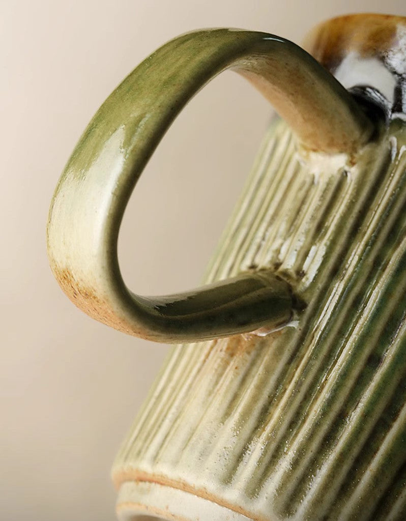 Large Modern Handmade Pottery Coffee Cup, Large Capacity Coffee Mugs, Unique Tea Cup, Creative Brown Green Ceramic Coffee Mugs-Paintingforhome