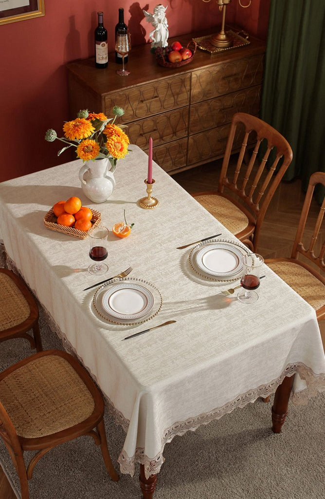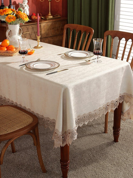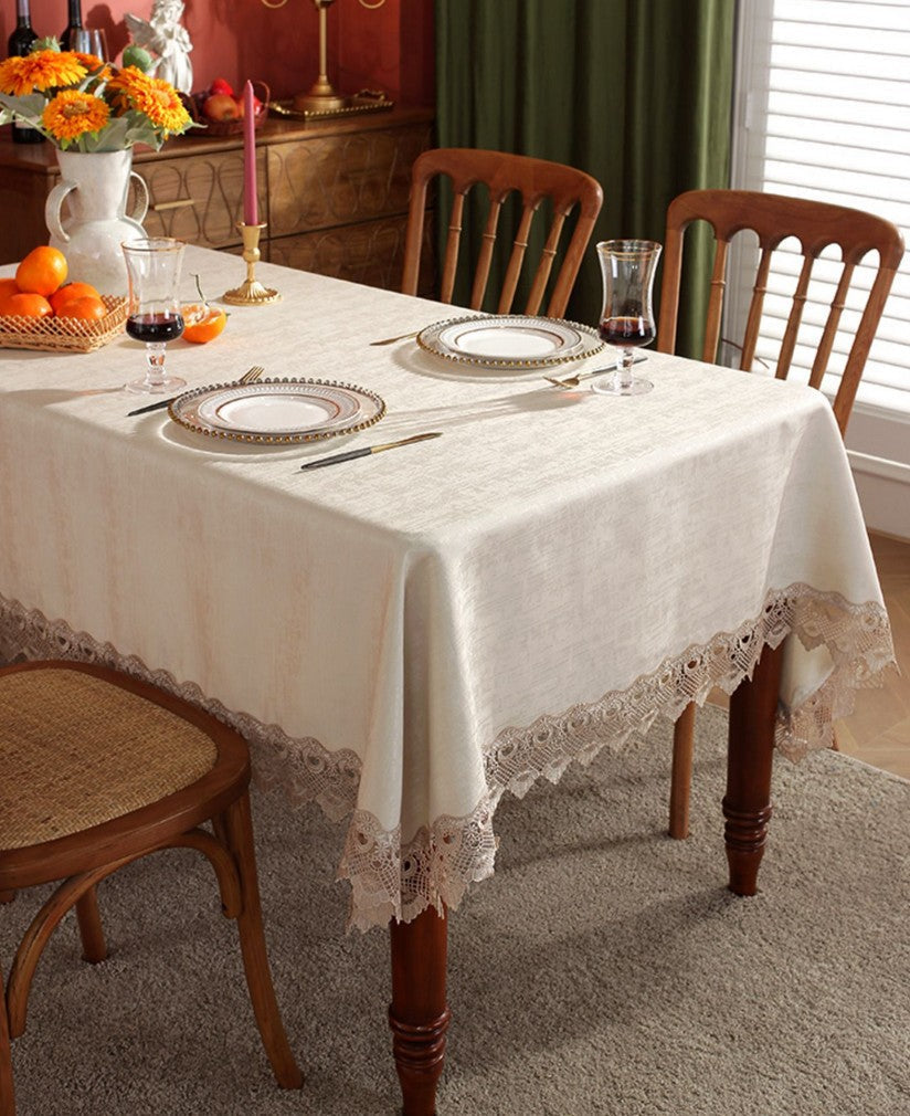 Large Simple Table Cloth for Dining Room Table, Beige Lace Tablecloth for Home Decoration, Modern Rectangle Tablecloth, Square Tablecloth for Round Table