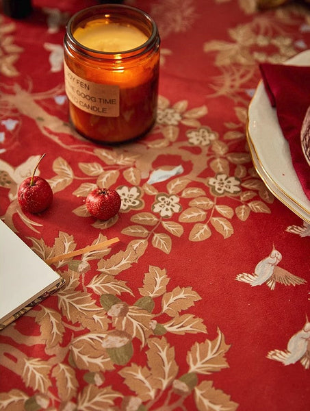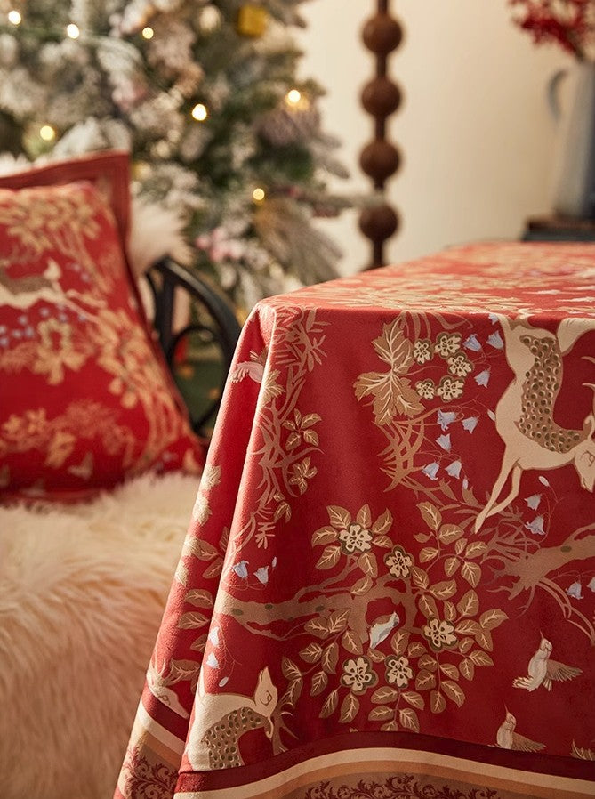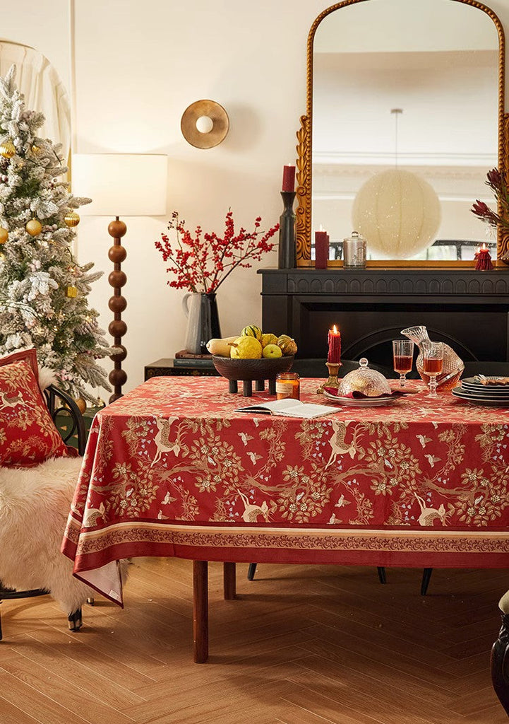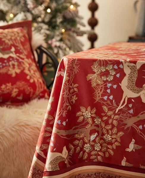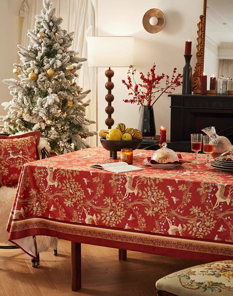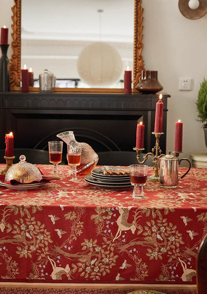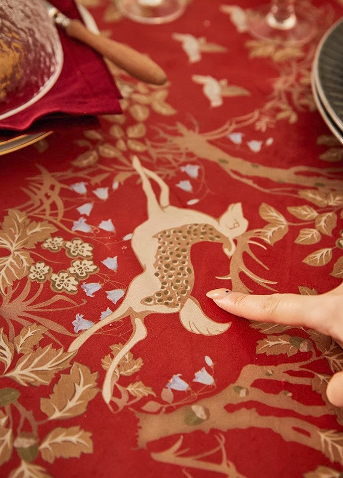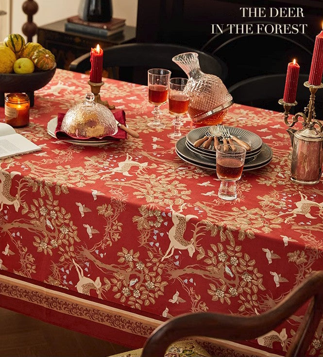Long Modern Rectangular Tablecloth for Dining Room Table, Forest Deer Red Table Covers, Square Tablecloth for Kitchen, Extra Large Tablecloth for Round Table