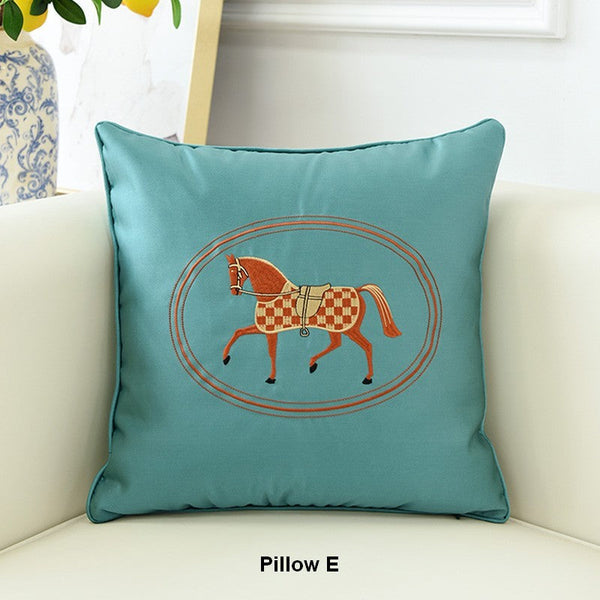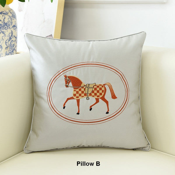 Modern Decorative Throw Pillows, Horse Decorative Throw Pillows for Couch, Embroider Horse Pillow Covers, Modern Sofa Decorative Pillows-Paintingforhome