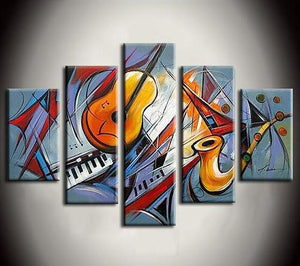 Extra Large Abstract Painting, Music Violin Painting, Hand Painted Canvas Art, Acrylic Painting on Canvas, Multi Panel Wall Art Painting