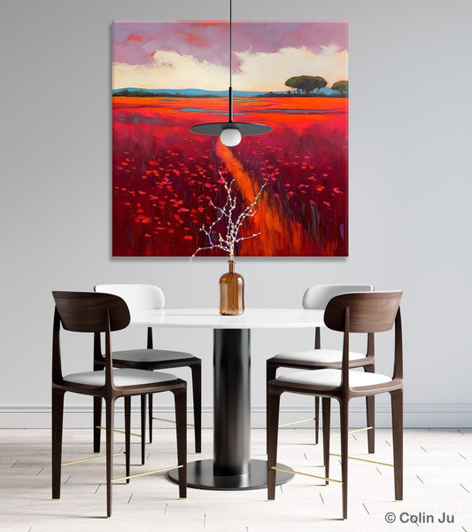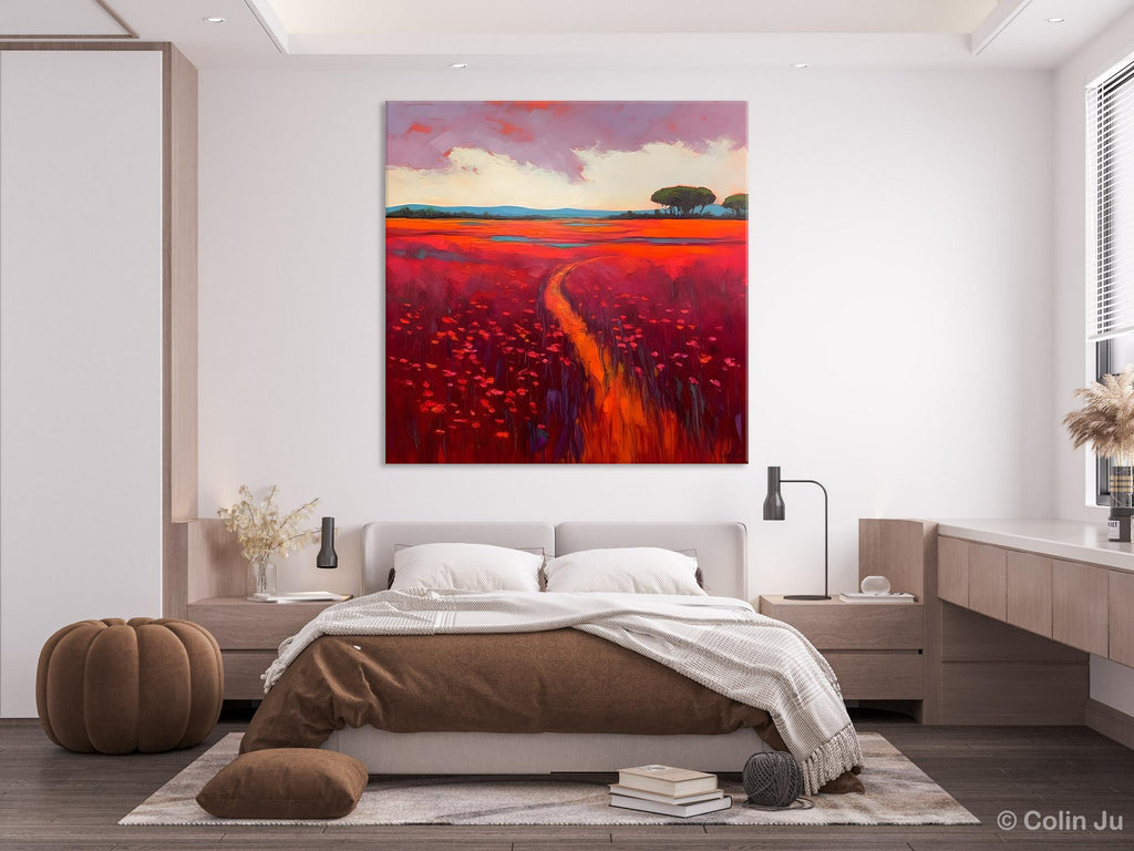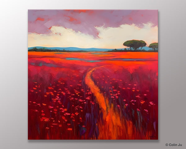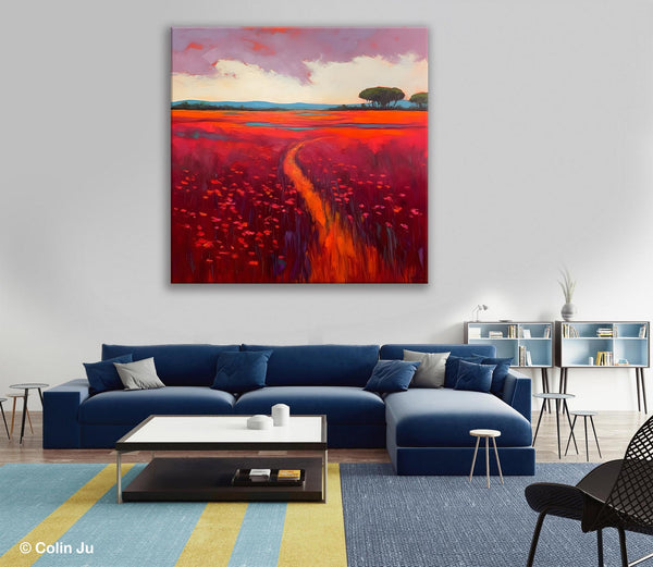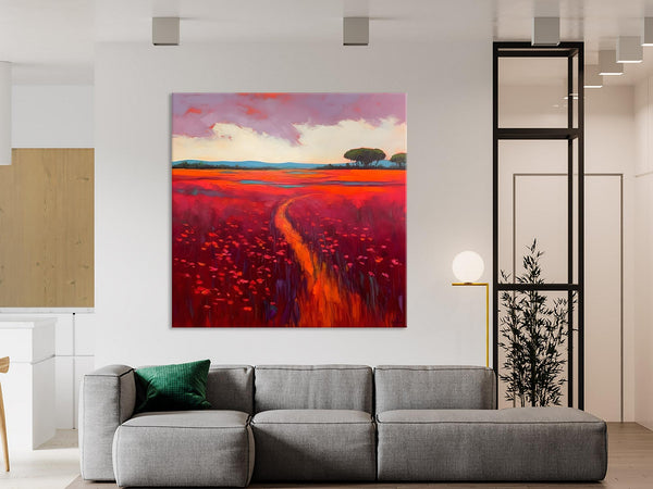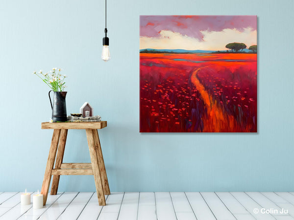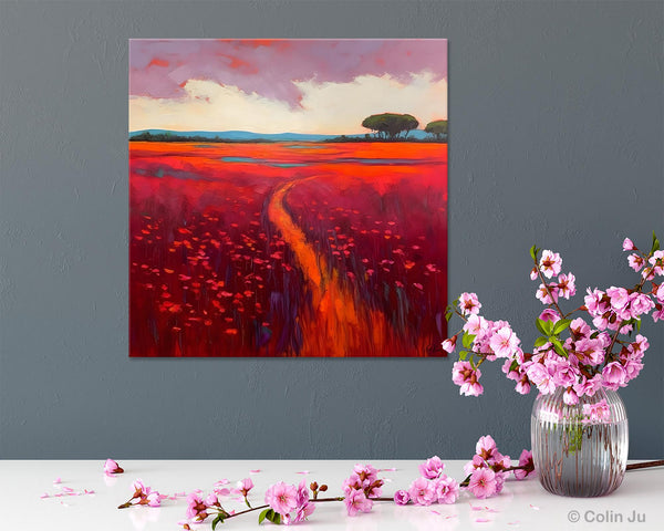 Original Hand Painted Wall Art, Landscape Paintings for Living Room, Abstract Canvas Painting, Abstract Landscape Art, Red Poppy Field Painting