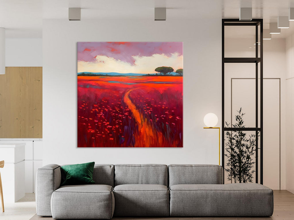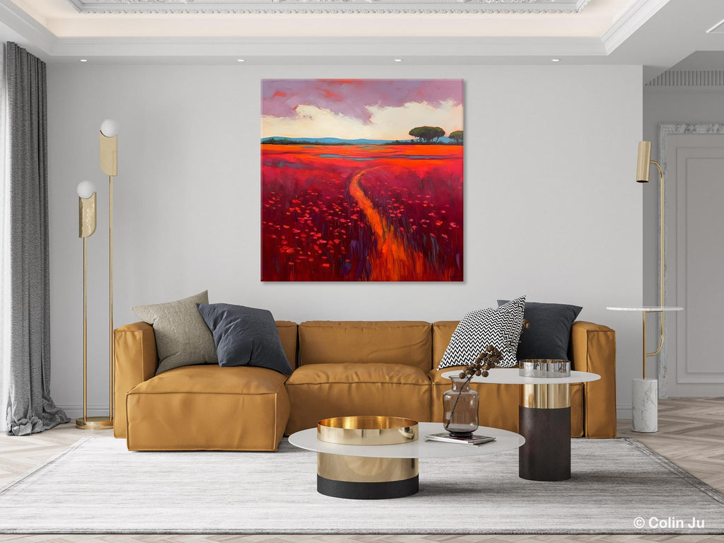 Abstract Canvas Painting, Abstract Landscape Art, Landscape Paintings for Living Room, Red Poppy Field Painting, Original Hand Painted Wall Art