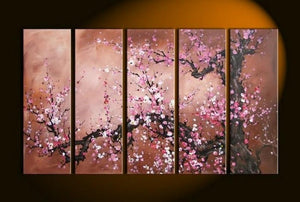Plum Tree Painting, Large Canvas Art, Abstract Art, Flower Art, Canvas Painting, Abstract Painting, 5 Piece Wall Art, Huge Painting, Acrylic Art, Ready to Hang-Paintingforhome