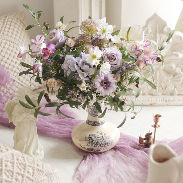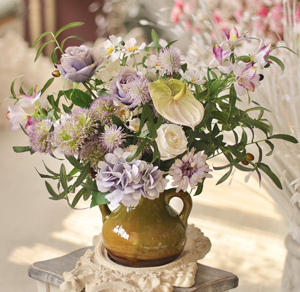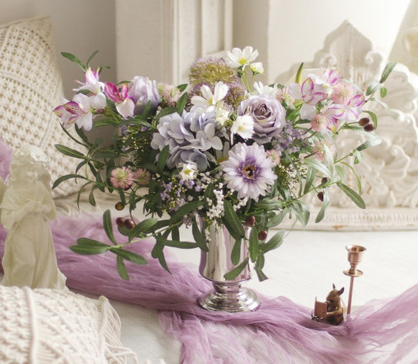 Real Touch Artificial Floral for Living Room, Large Bunch of Purple Romantic Flowers, Beautiful Spring Flower Arrangement for Home Decoration, Table Centerpiece