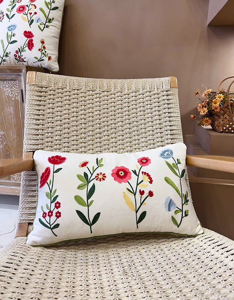 Throw Pillows for Couch, Spring Flower Decorative Throw Pillows, Farmhouse Sofa Decorative Pillows, Embroider Flower Cotton Pillow Covers